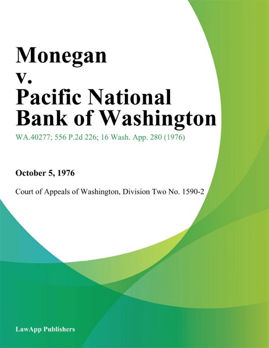 (DOWNLOAD) "Monegan V. Pacific National Bank Of Washington" by Division Two Court of Appeals of Washington " eBook PDF Kindle ePub Free